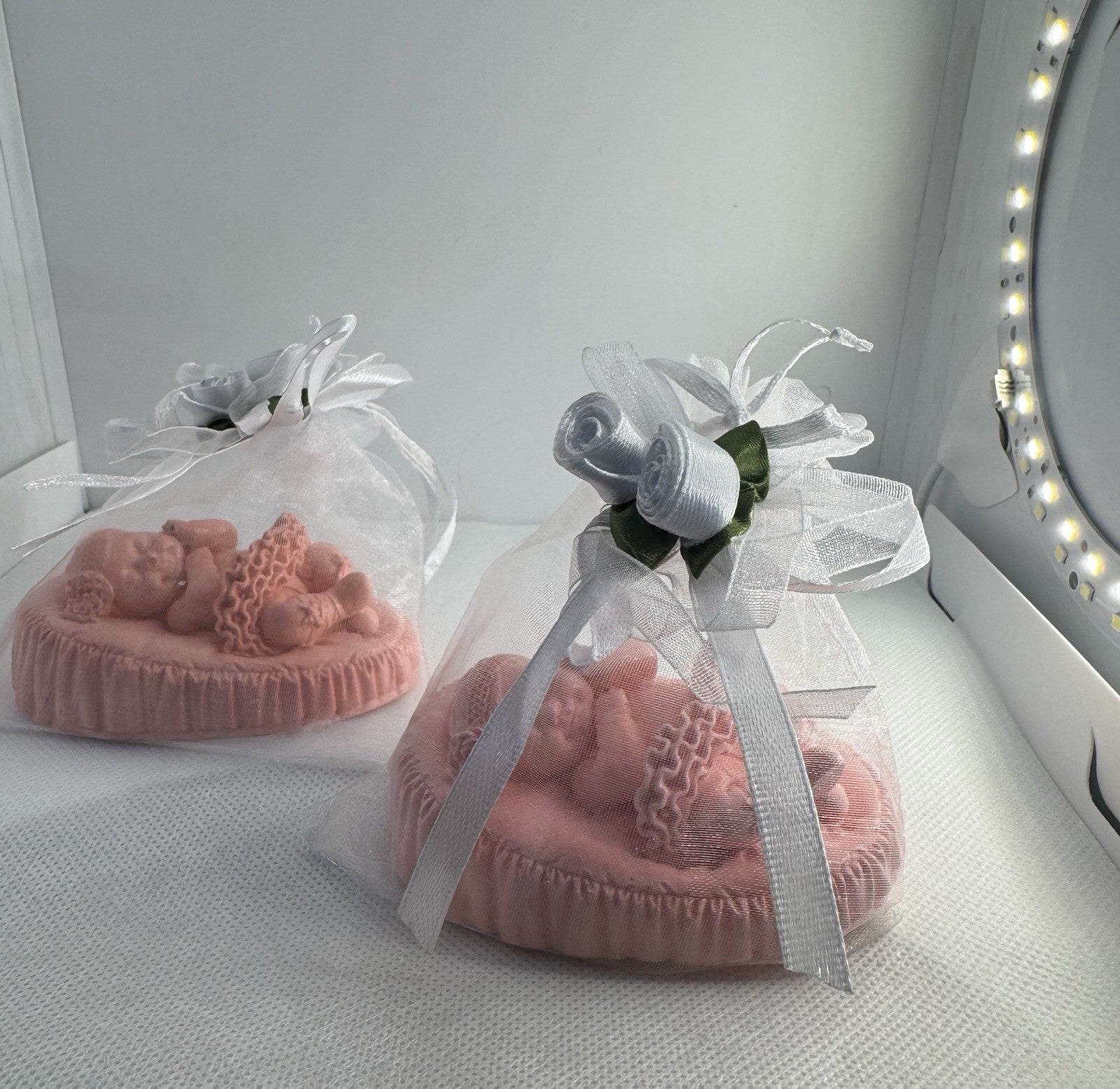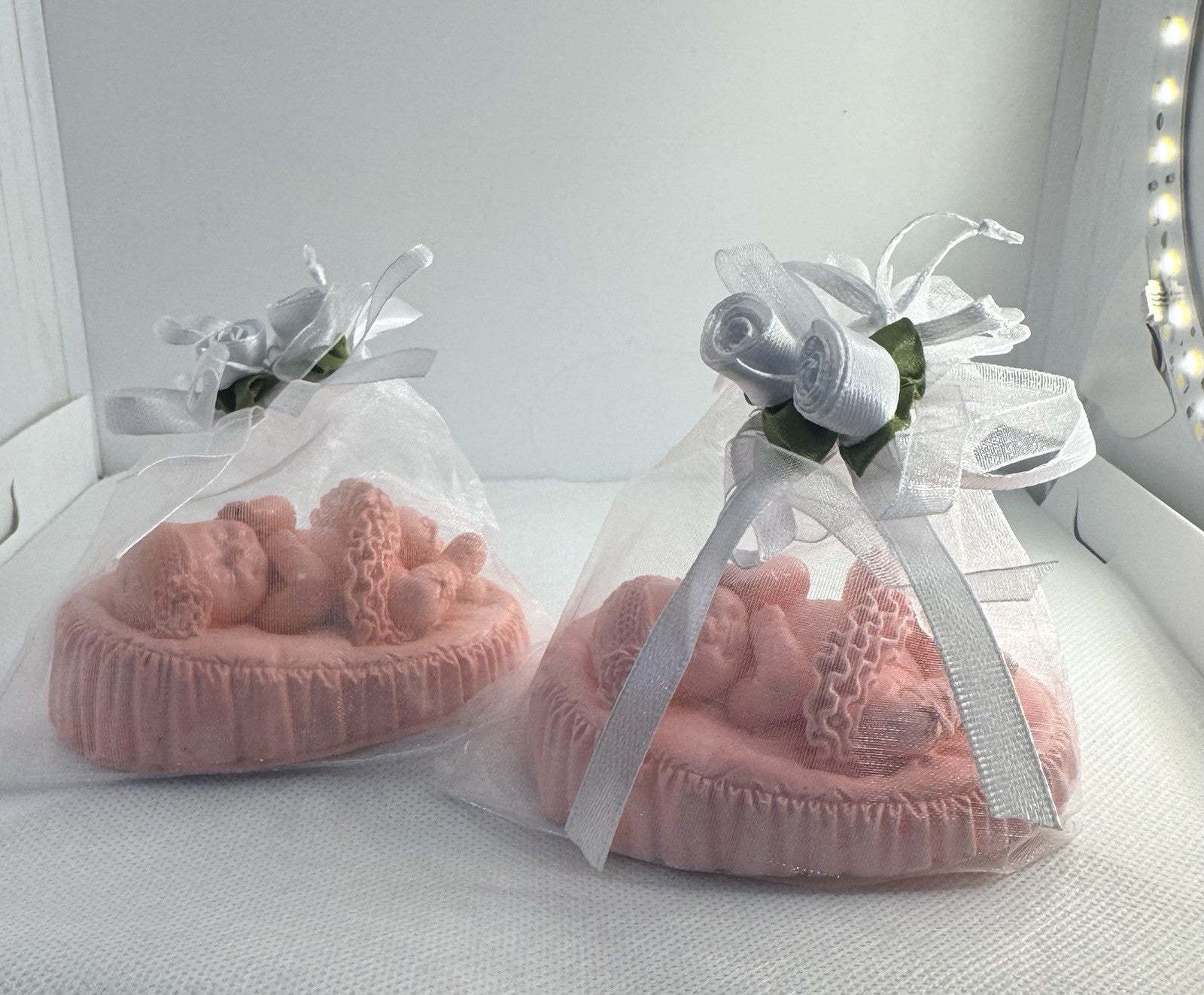 1. Handmade pink eco resin Christening/baptism gifts: These unique baby shower favors for girls are crafted from environmentally-friendly eco resin plaster showcasing a beautiful pink hue that adds a touch of sweetness to any special occasion. Perfect as gifts for daughters, these handmade items offer a personalized and thoughtful way to commemorate a baby shower or other significant event in a little one's life. Each one is meticulously crafted with care and attention to detail, making them a perfect keepsake for parents and their little one.